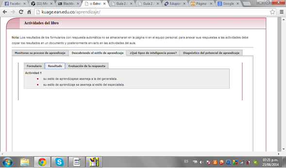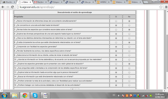 Según la actividad mi estilo de aprendizaje son casi iguales, debido que existen temas que no dedico mucho tiempo de investigación, como existen otros que desarrollo completamente concentrando en cada detalle la solución del tema.
